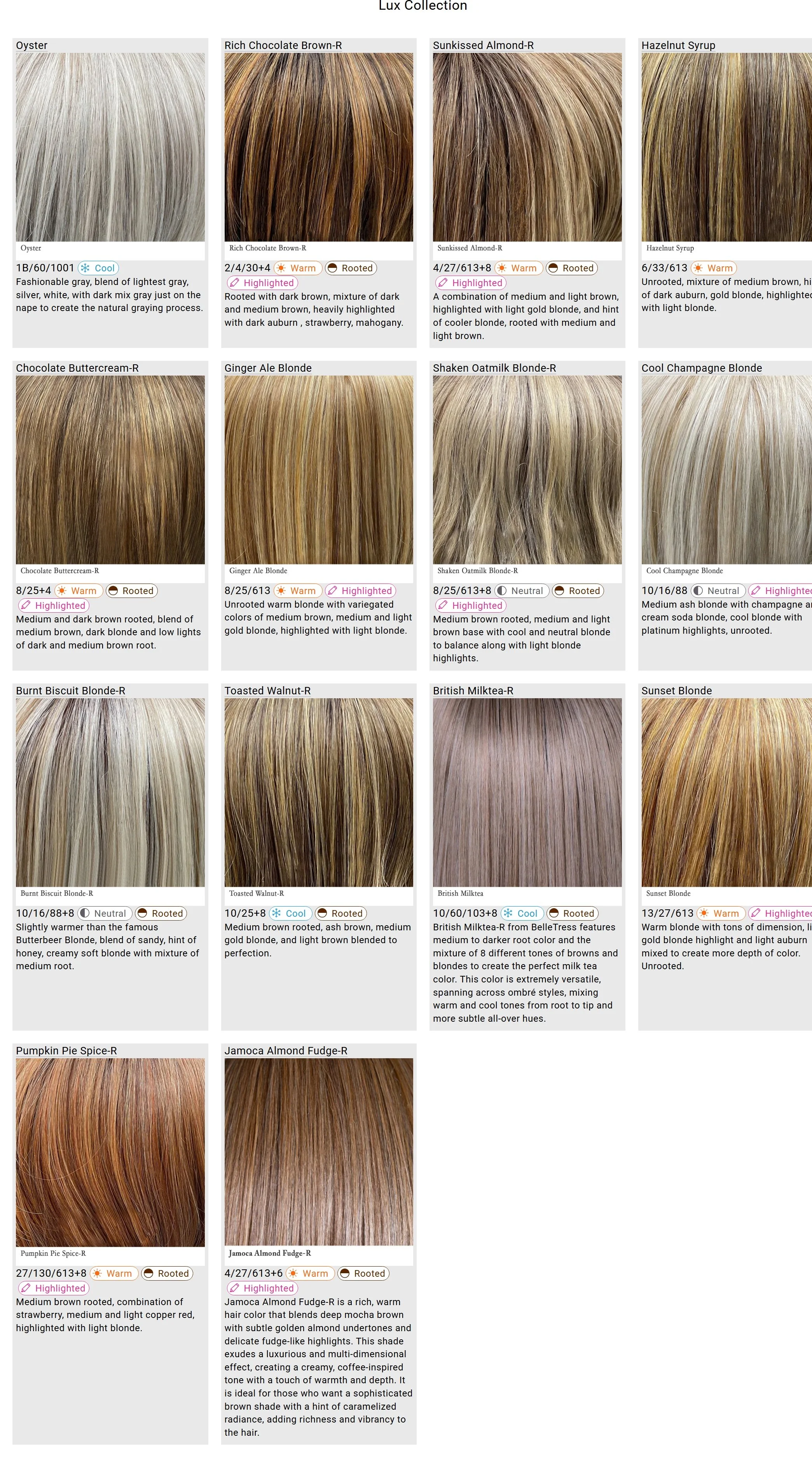 BELLE TRESS LUX COLLECTION HAIR COLOR CHART