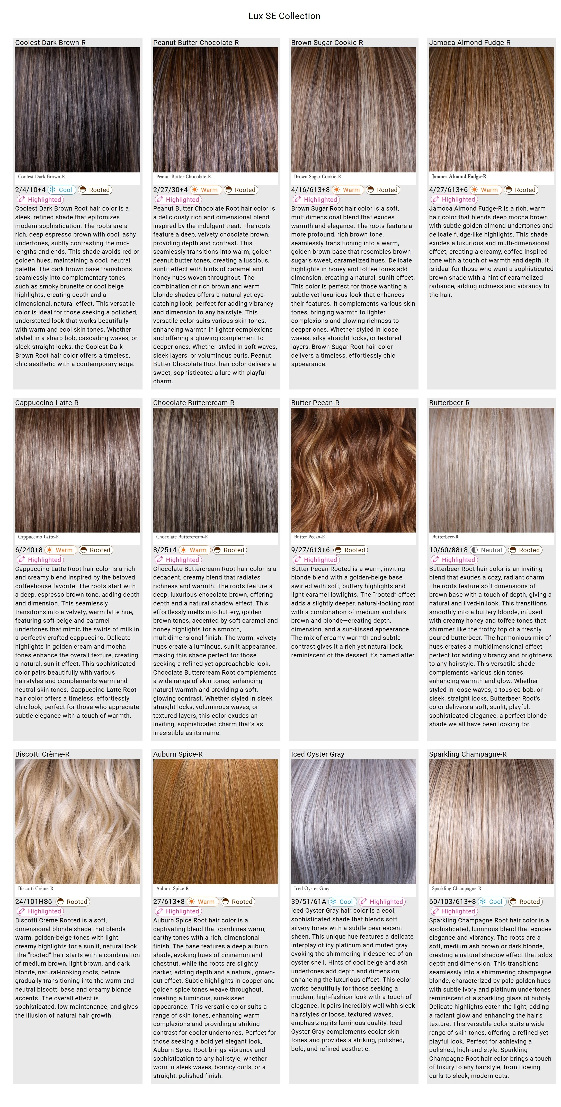 BELLE TRESS LUX SE COLLECTION HAIR COLOR CHART